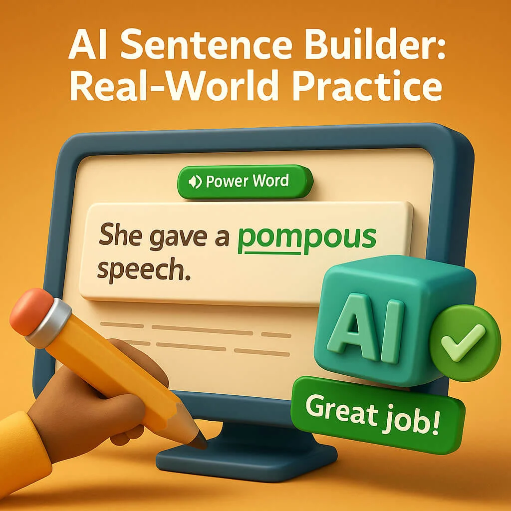 Students take their Power Word for a test drive by crafting an original sentence. Our AI sentence builder supports them every step of the way.